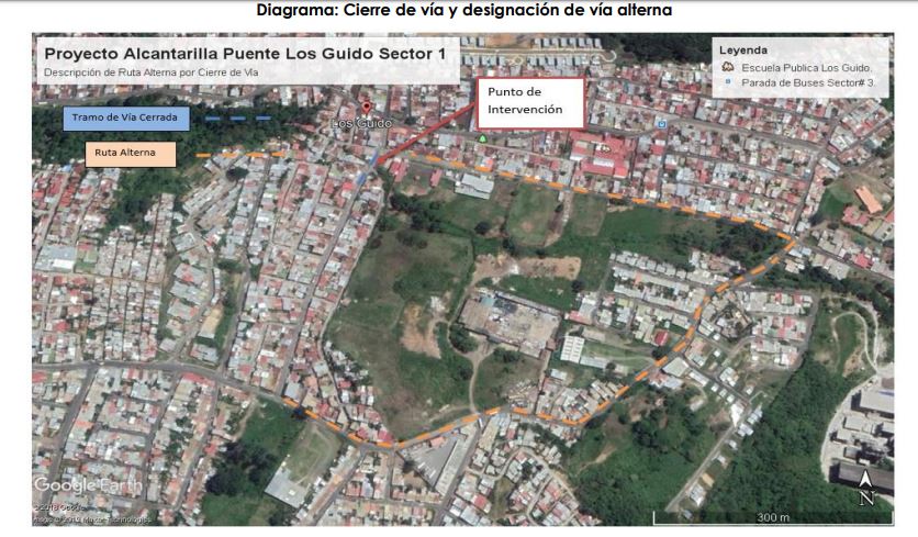 Las labores serán por un período de tres meses y se realizarán mediante cierre total de la vía, el cierre será durante 24 horas. Como ruta alterna pueden utilizar la calle conocida como Calle La Yegua.